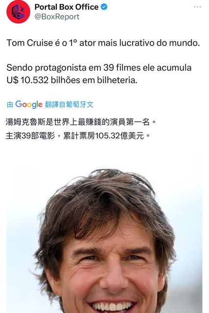 湯姆克魯斯是世界上最賺錢的演員第一名。