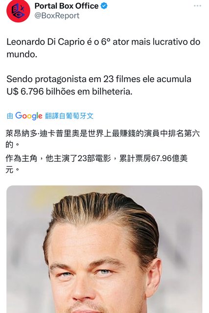 李奧納多狄卡皮歐是世界上最賺錢的演員中排名第六的。作為主角,他主演了23部電影,