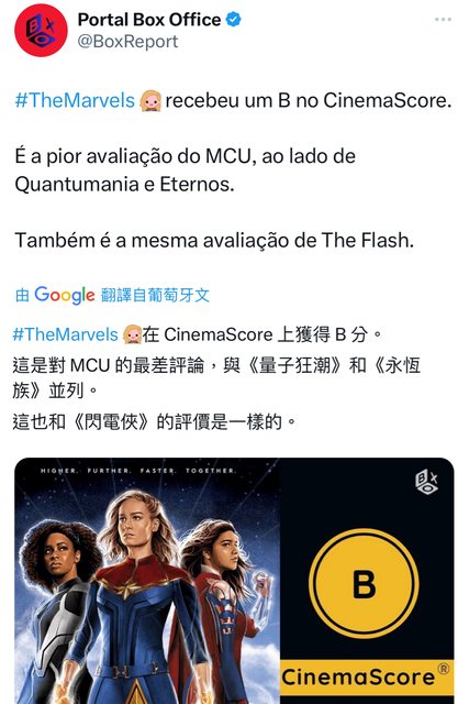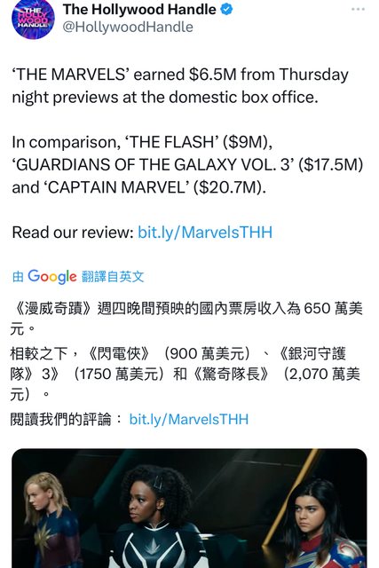 推 holyseraph : 驚奇隊長2的最終全球票房應該跟閃電俠差不多11/11 14:40