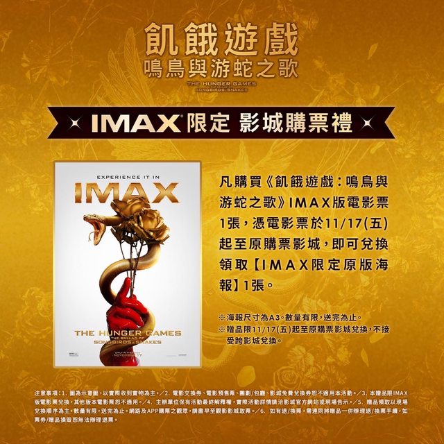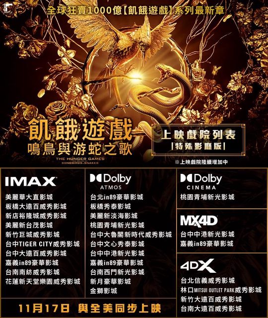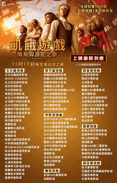 標題[情報] 《飢餓遊戲:鳴鳥與游蛇之歌》上映戲院