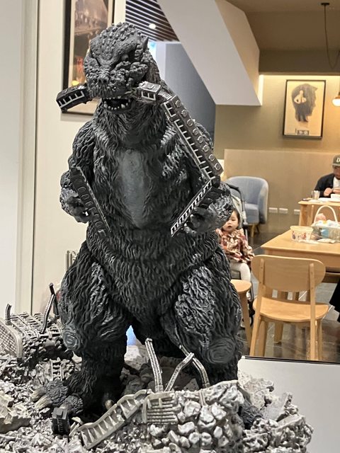 裡頭很乾淨舒適,也特地為企劃佈置了不少哥吉拉的模型、裝飾、簡介