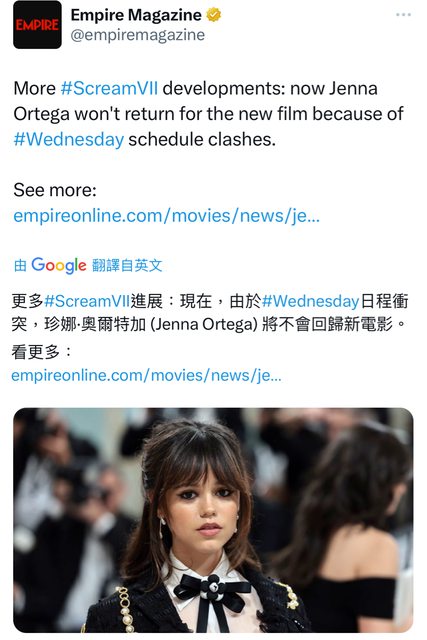 → minioreocake: 談好,因為跟Wednesday拍攝檔期衝突。11/23 03:20