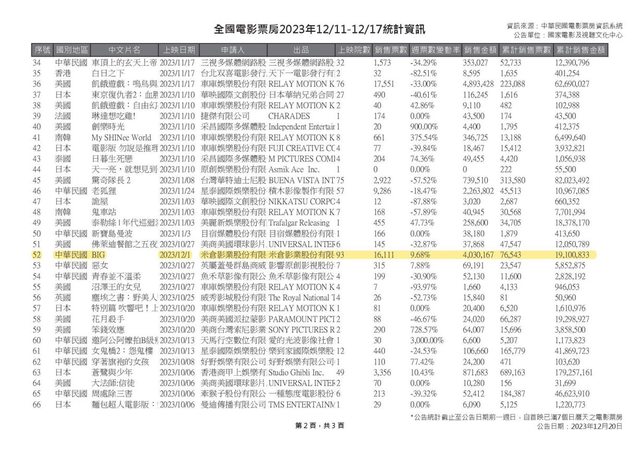 資料來源:國家電影及視聽文化中心 全國電影票房2023年12/11-12/17統計資訊 https://i.imgur.com/5symGQm.jpg