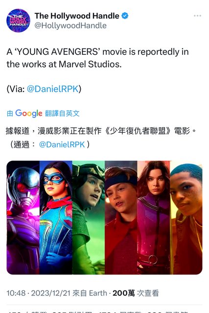 → SINW : 何況MCU的YA復仇者幾個重心人物八字沒一撇12/22 00:37
