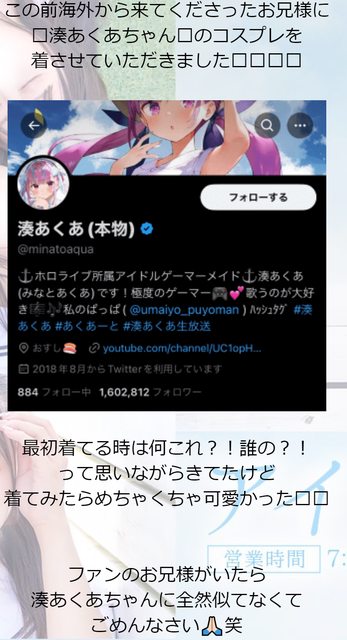 接著又說這是她第一次有客人帶衣服來給她cos所以覺得很新奇也很興奮