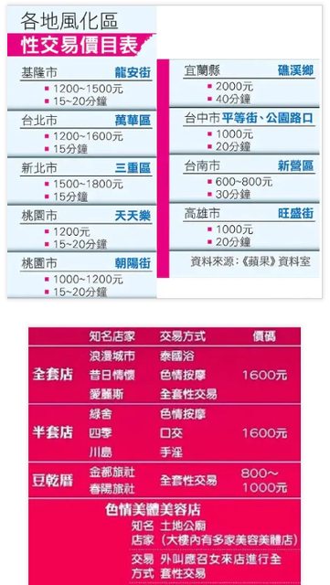 會冰火、腿夾、乳推、舔蛋、素股、吹喇叭/環保吹、毒龍鑽、舔肛,等18招服務有SOP技