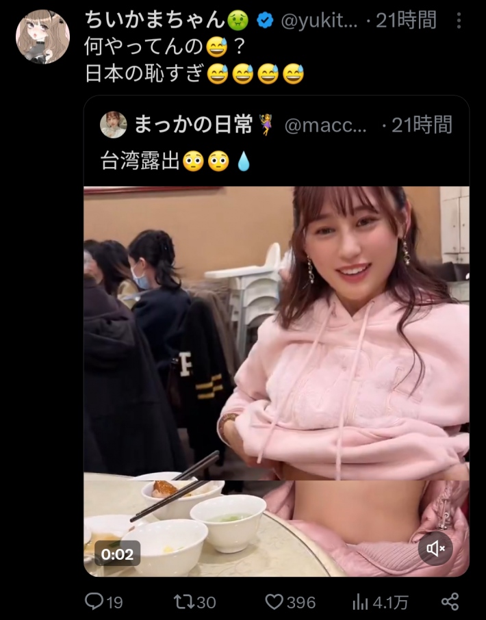 → alex813: 台灣鄉民:好大 好香 好讚 日本鄉民:丟臉 難看 國恥 01/30 22:35