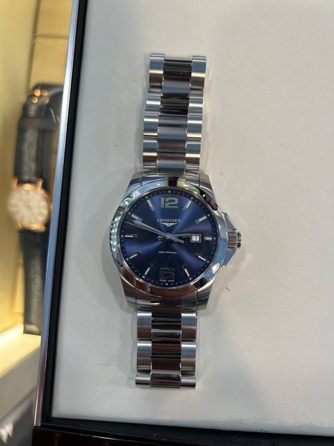 手錶型號:conquest石英 43mm 藍面