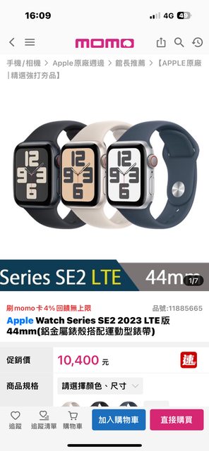 品牌名稱:Apple 手錶型號 :SE 44mm LTE版本