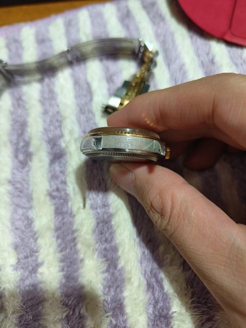 有金色的部分都是K金,錶鏡是壓克力,刮痕才那麼嚴重,說那年代都是壓克力