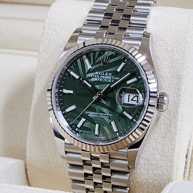 【售】:ROLEX 勞力士 126234 新款棕櫚葉綠色錶盤 日期窗 五珠鍊帶版 36mm