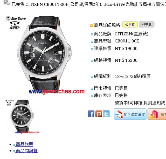 手錶型號:CB0011-18E