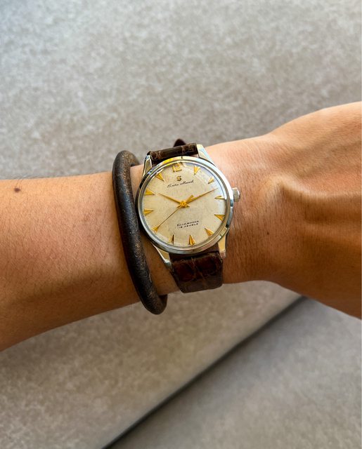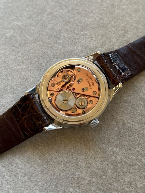 3. Seiko marvel 1960年代老錶,19顆避震寶石版本,搭配紅銅色機芯,一般17顆寶石是