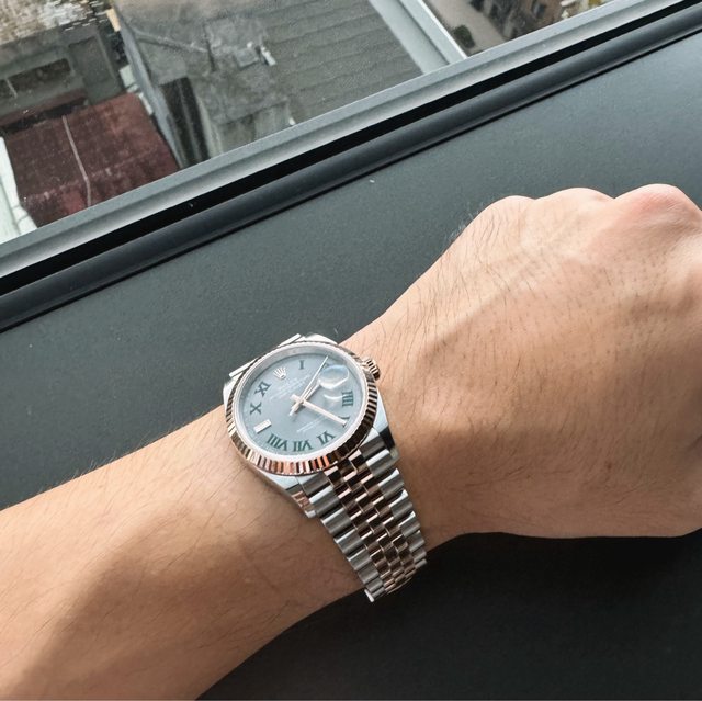 進入手錶這樣奢侈品的大坑後,原先對於勞力士有諸多不入手的「藉口」,品牌銷售策略 、品牌調漲程度、手錶設計美學…… 但說白了還是有種帶酸的底蘊 好像就是買不到才這樣說 最後還是感覺到玩錶始終饒不過勞力士的氛圍 於是下定決心要入手一款 但還是為自己加了最後的藉口或稱之為底線的是:不要配貨不要加價在AD店購買 換句話說 也大抵表示只要是熱門款基本沒有入手的可能。 從四月份開始不斷看版上的排隊和入手心得 還是感覺有許多不確定性 似乎有些像是倖存者偏差 有些像是老經驗的共識和默契 帶著種種不確定 還是跑了幾間AD店詢問 從一開始忠孝復興的中美、南京西路中山的中美 信義的金生儀和101的迪生 當中也在看網友的心得文中知道了天母的AD 抱著都問了這麼多也不差這家的心情下去排了隊 排了126234 藍面綠面的三角坑紋五銖鏈,還有玫瑰半金綠羅馬 在六月初天母AD表示店裡有一隻玫瑰半金綠羅馬,三角坑紋,五銖鏈的配置可以販售 當天傍晚就去帶回。雖然半金款通常也不需要配貨 也比較容易排到 但對於一個生客可以在兩個月左右的時間用原價(雖然調漲了...)買到還是覺得倍感幸運 也想祝福大家可以順利買到心儀的錶款 https://i.imgur.com/JjT7e6l.jpeg