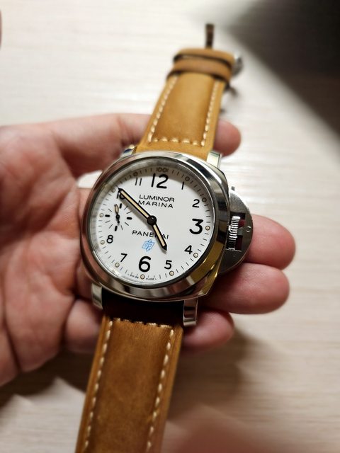 : 這只為沛納海入門款,手上鍊,有護橋但沒三明治面盤,整體來說CP值很高,為本身第