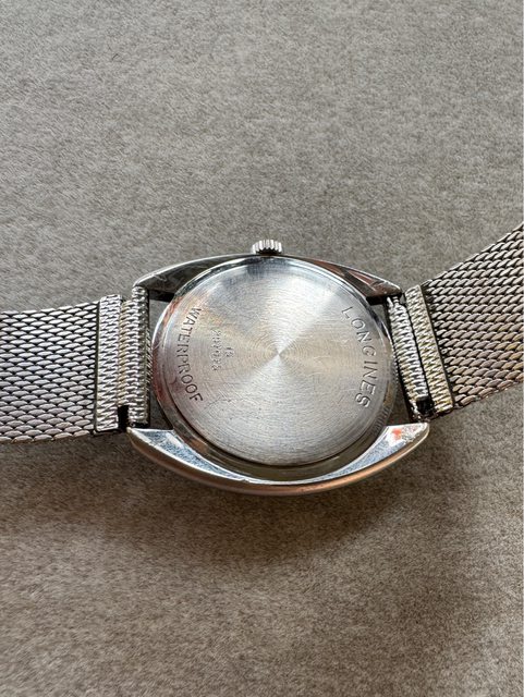 2.浪琴手上鍊老錶,約1968年生產,羅馬數字時標,無曆面盤同心圓紋路,經典428手上