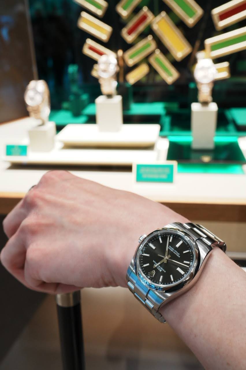 前言: 腕圍只有15.4 cm的我最大只能戴到40~41mm的錶,但即便是40mm的錶對我而言 還是有點大,下面是我目前超過40mm的錶戴起來的樣子: 蝙蝠俠(40mm): https://imgur.com/FNOupDB DJ溫布頓 (41mm): 這隻單純是因為喜歡他的錶盤設計買的,但戴起來實在太大 沒戴多久後就賣掉了 https://imgur.com/485yeV9 家人的Sea-Dweller (41mm): https://imgur.com/Ui2CCnF =================================分隔線============================= 為了找一隻符合自己手圍比例的勞,去年就跟AD的SA說,如果有126234白色的話再 跟我說一聲,沒想到前幾天SA突然line我說有進一隻OP 36mm 綠色問我要不要去看看? 雖然不是我想要的DJ, 但想說同樣是36mm去看看也無妨,沒想到看到實錶後眼精 為之一亮,綠色果然是勞士力的招牌顏色,非常的有質感且會隨著光線呈現不同的 色澤,加上36mm真的很適合我的腕圍,於是就捏著買下去了,以下為上手照: 光線沒有直射時會呈現暗綠色: https://imgur.com/siZ5N9Y 光線充足時綠色會稍淺: https://imgur.com/9ZUkzLO 不同角度的綠: https://imgur.com/1IuiNP5 近看質感: https://imgur.com/PKcRCIM 感謝收看 -- ※ 發信站: 批踢踢實業坊(web-ptt.org.tw), 來自: 210.61.131.108 (臺灣) ※ 文章網址: https://web-ptt.org.tw/watch/M.1721709870.A.312