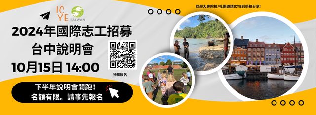 標題[資訊]2024年ICYE國際志工招募 10/15台中說明會