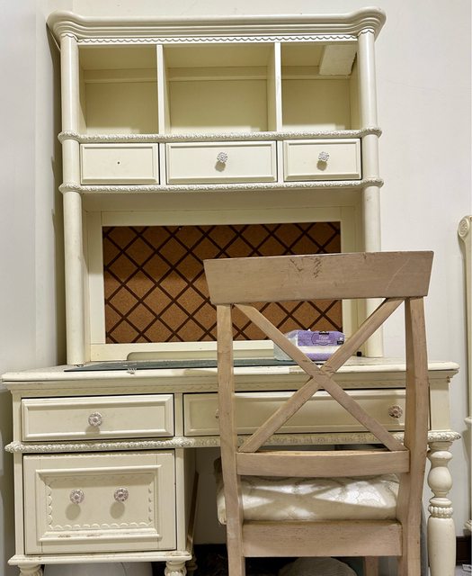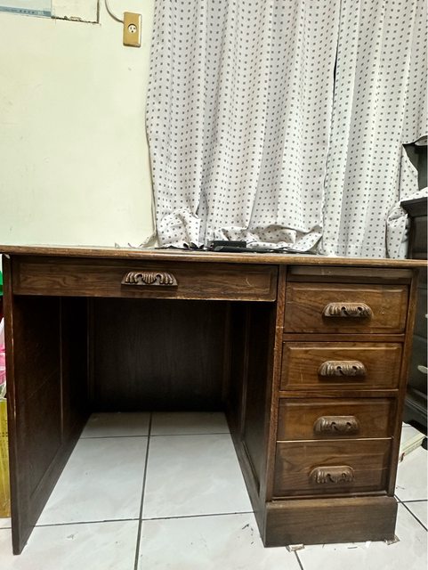 6.實木書桌椅組 桌面已泛黃跟需要刷洗