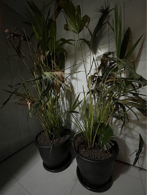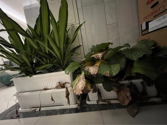因為沒在照顧,植物有些已經枯萎,